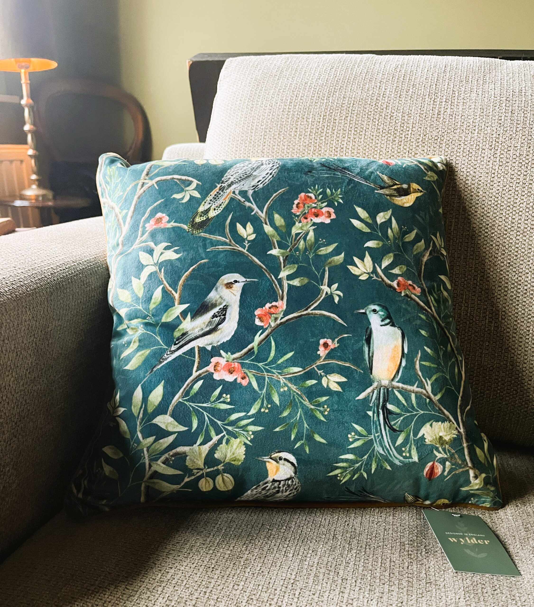 Heerlijk fluwelen kussen. De diepe kleur en het gedetailleerde botanische patroon geven het kussen een warme, klassieke uitstraling — perfect voor een fauteuil, bank of als sfeervol accent in een slaapkamer. Het voelt alsof je een stukje natuur en nostalgie in huis haalt.