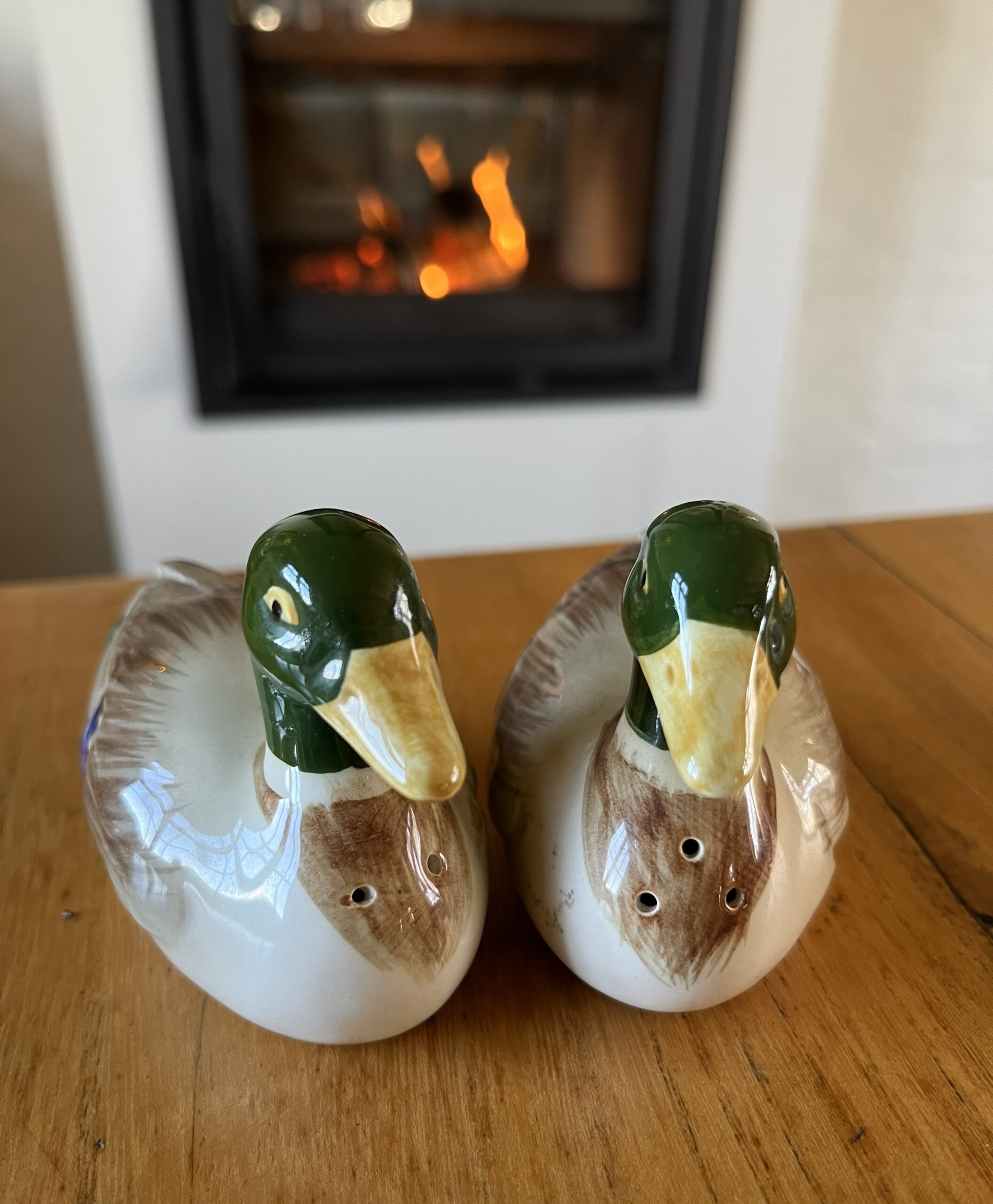 Dit charmante peper- en zoutstel in de vorm van twee wilde eenden brengt direct een vleugje Engels plattelandsleven op tafel. De zachte kleuren en glanzende afwerking doen denken aan rustige ochtenden bij het water en lange diners bij het haardvuur.