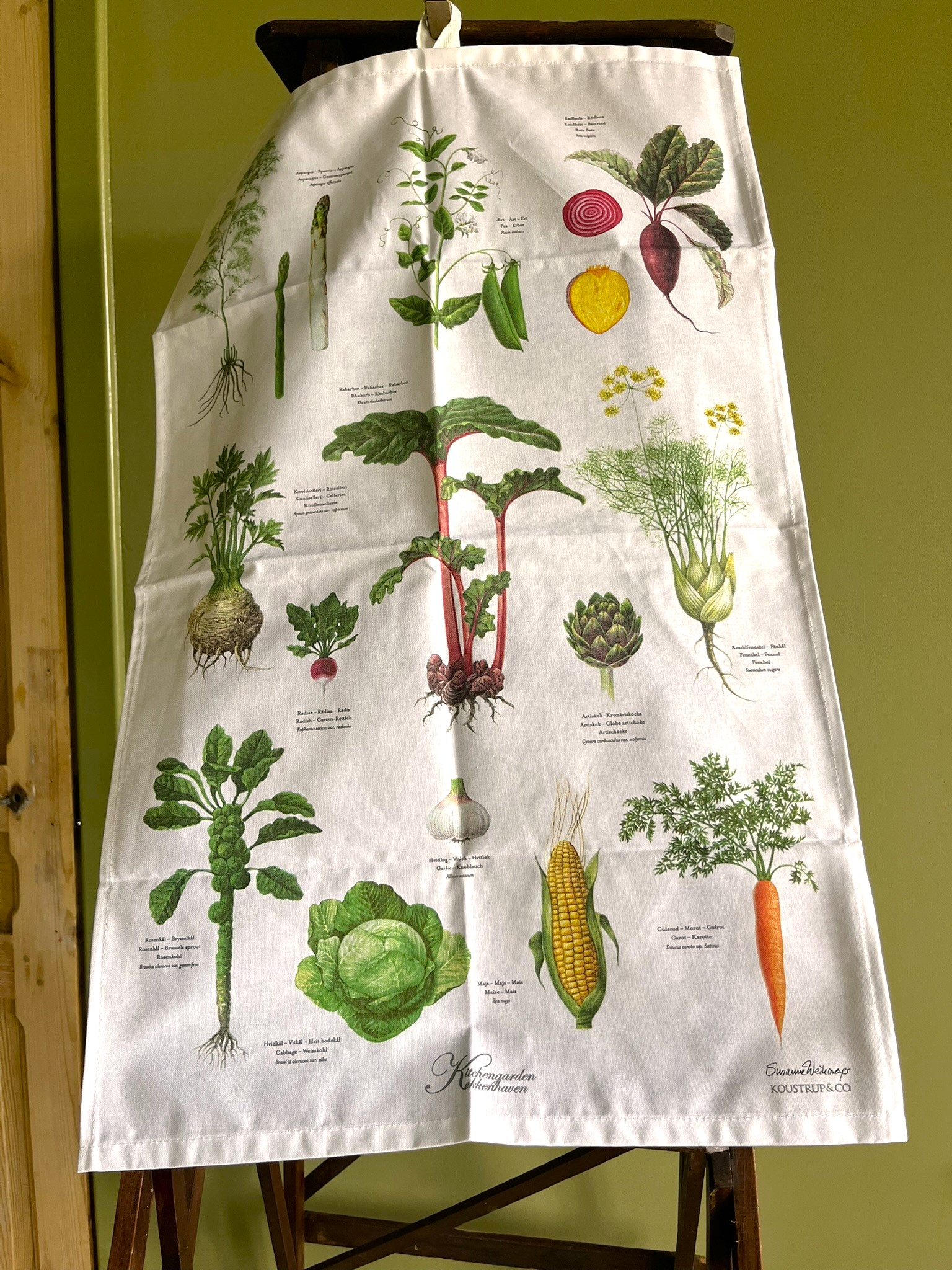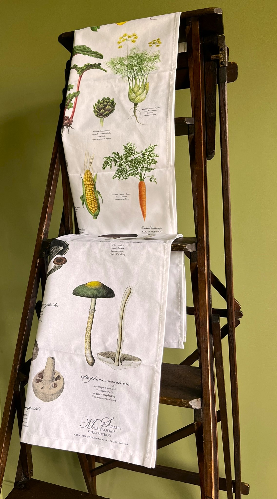 Een ode aan het buiten- en bosleven — de Woodland Walk theedoek toont een sprookjesachtig tafereel vol paddenstoelen of heerlijke groenten.