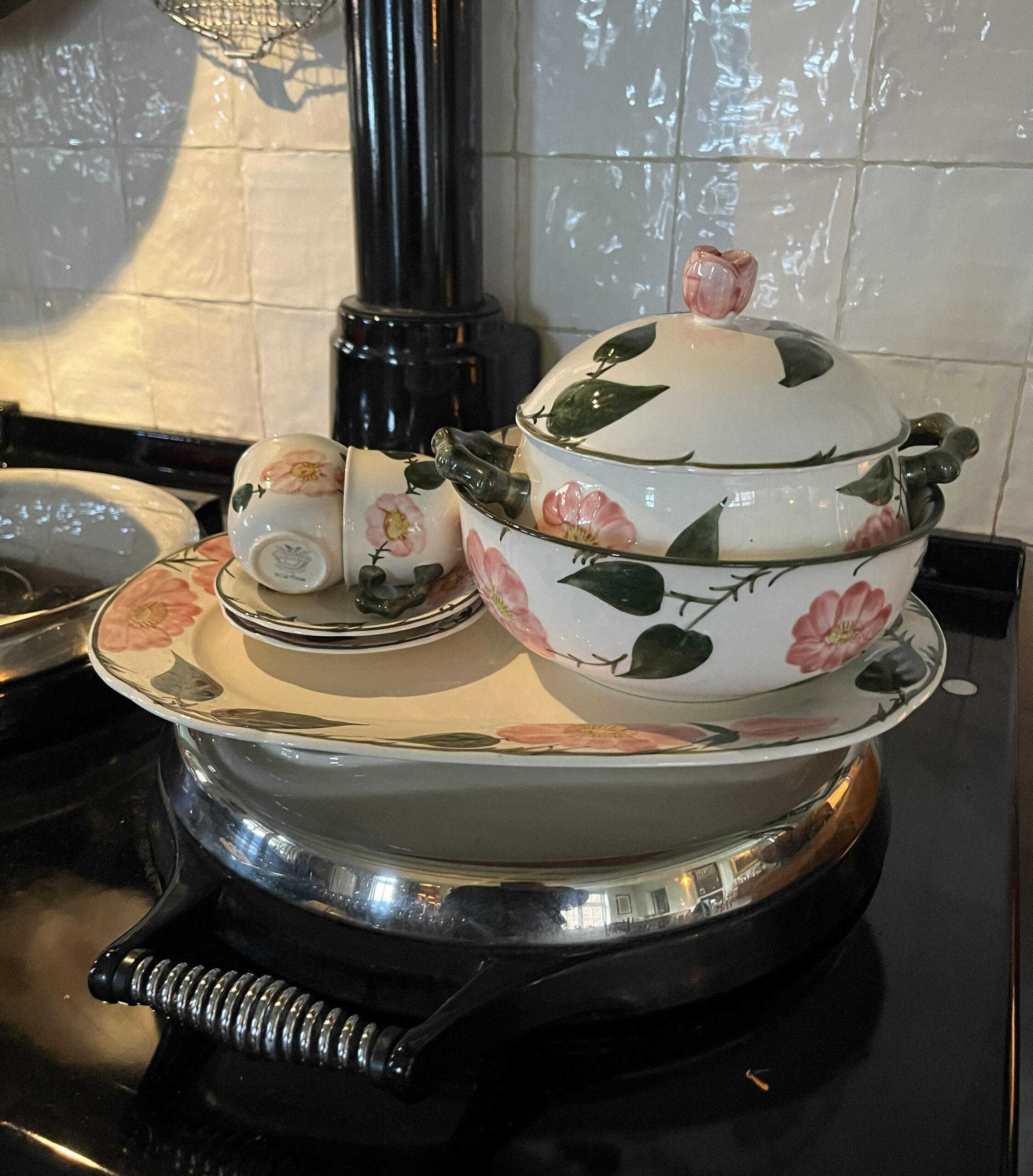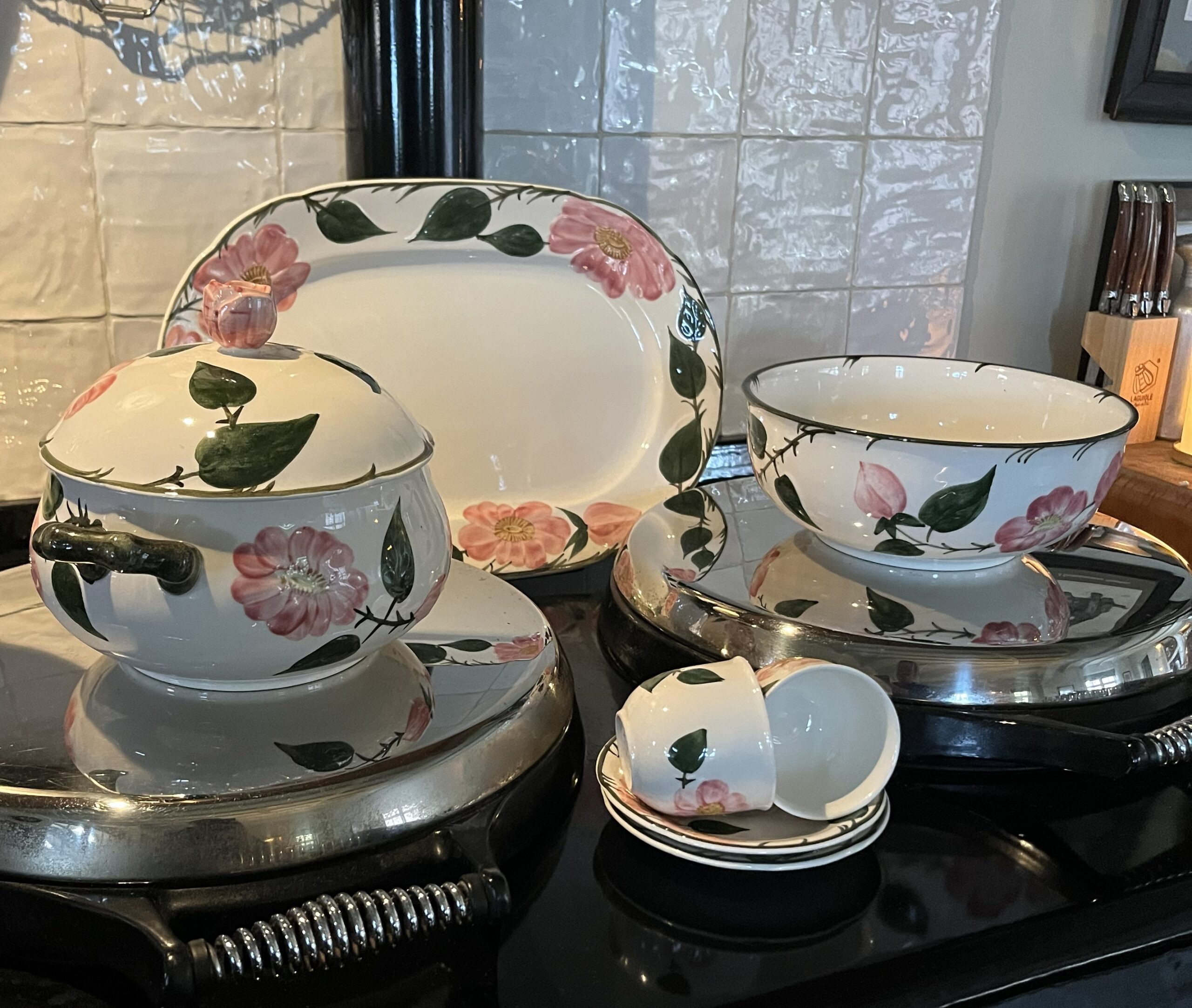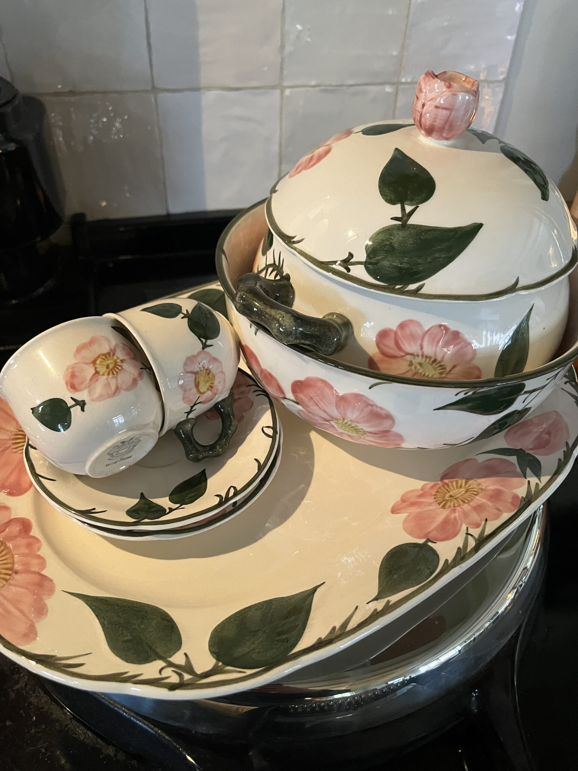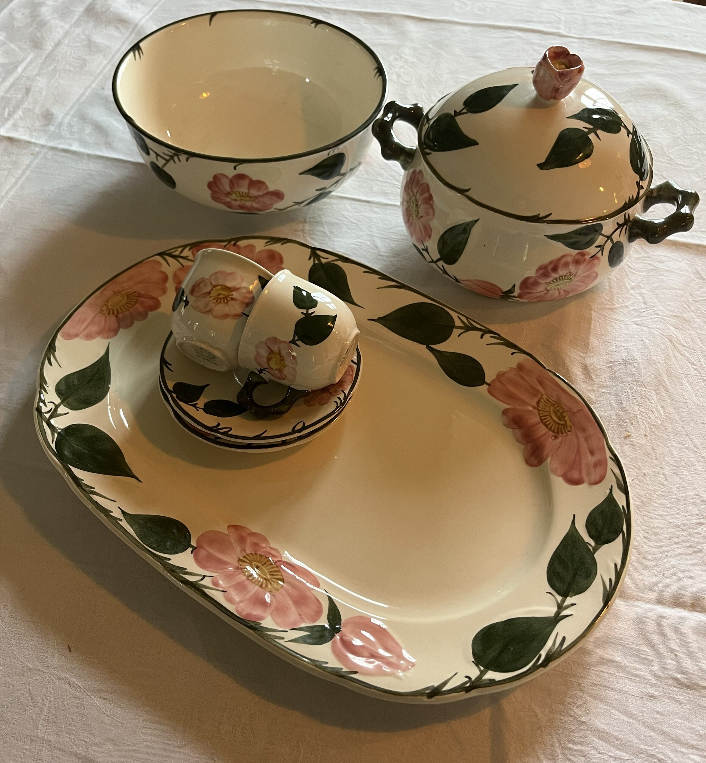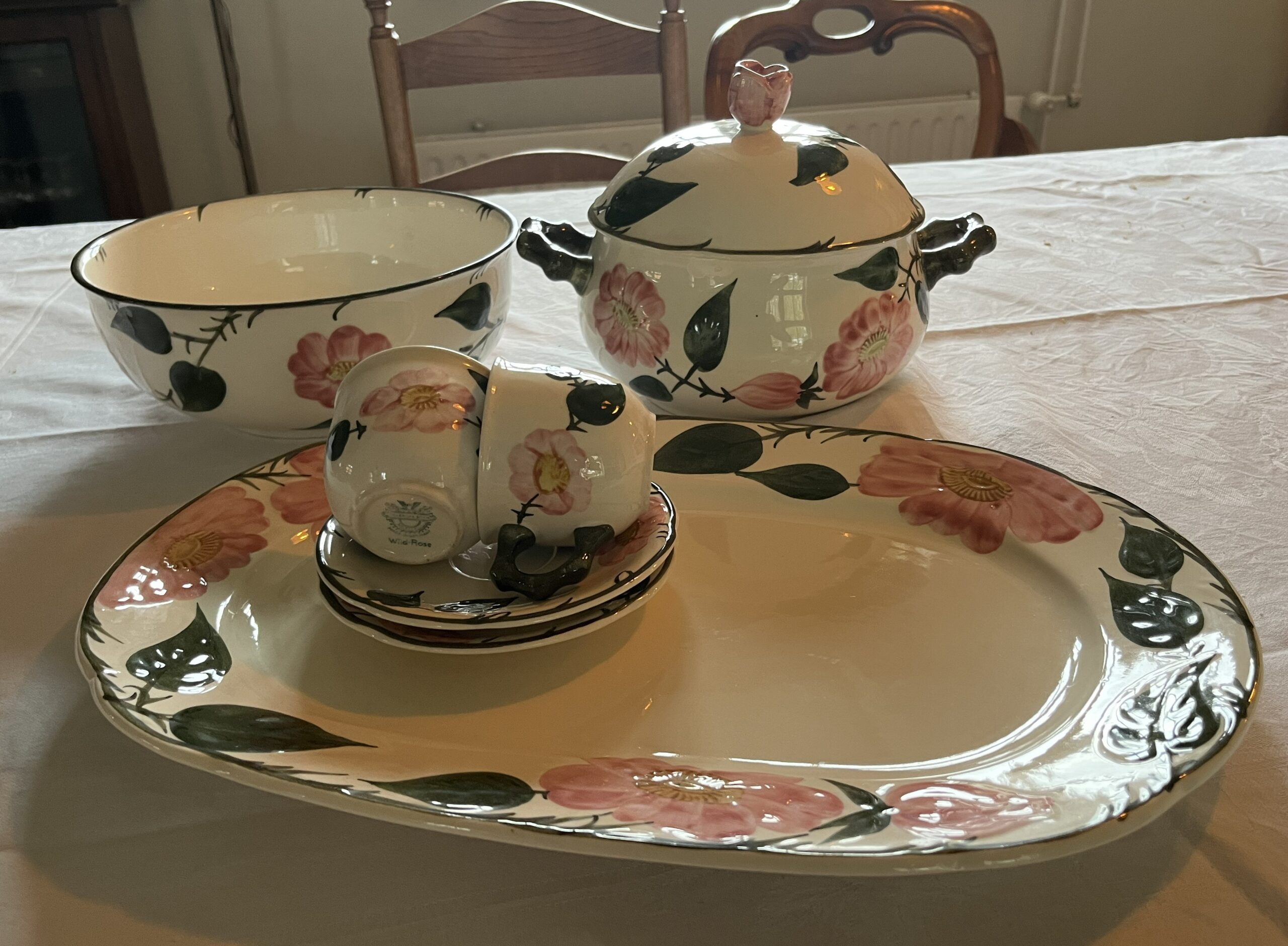 Prachtige onderdelen van Villeroy & Boch Wildrose collectie , bestaande uit een terrine, schaal, kom en twee kopjes. Klassiek en tijdloos porselein met een elegante uitstraling. Mooi als decoratief geheel of om te gebruiken aan een sfeervol gedekte tafel.